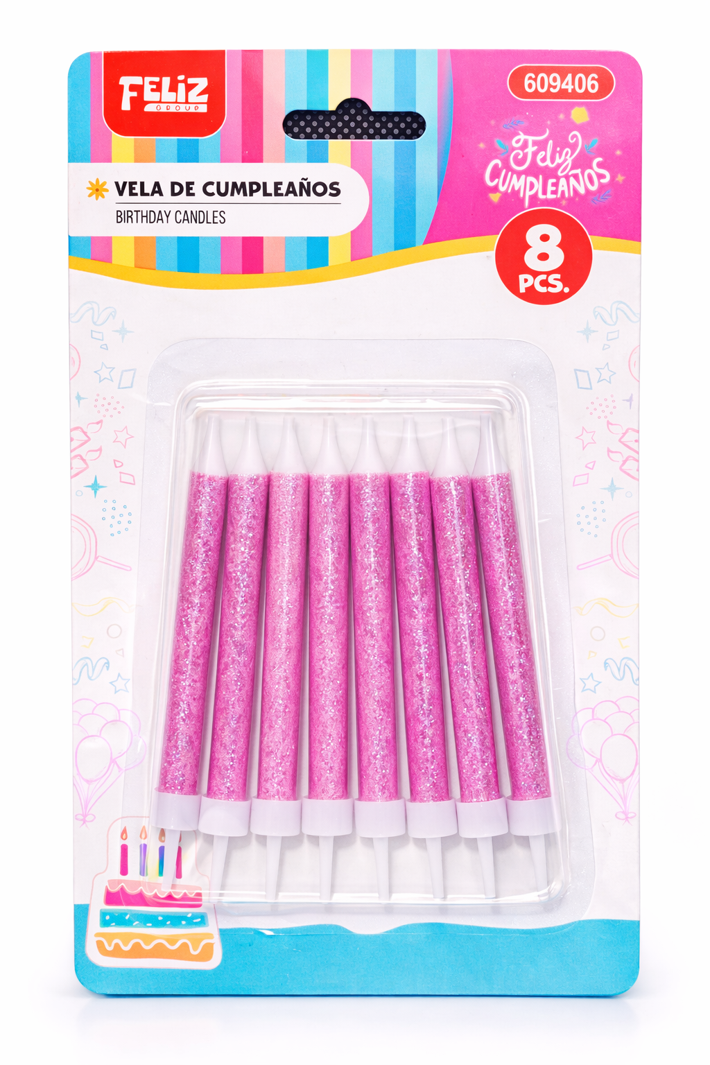 Estas velas destacan no solo por su elegancia, sino también por su alta calidad. Fáciles de encender, se queman de manera uniforme, proporcionando un ambiente festivo adecuado tanto para adultos como para niños. Su vibrante color rosado y detalles de glitter son ideales para fiestas temáticas o cualquier evento que requiera un toque extra de estilo.